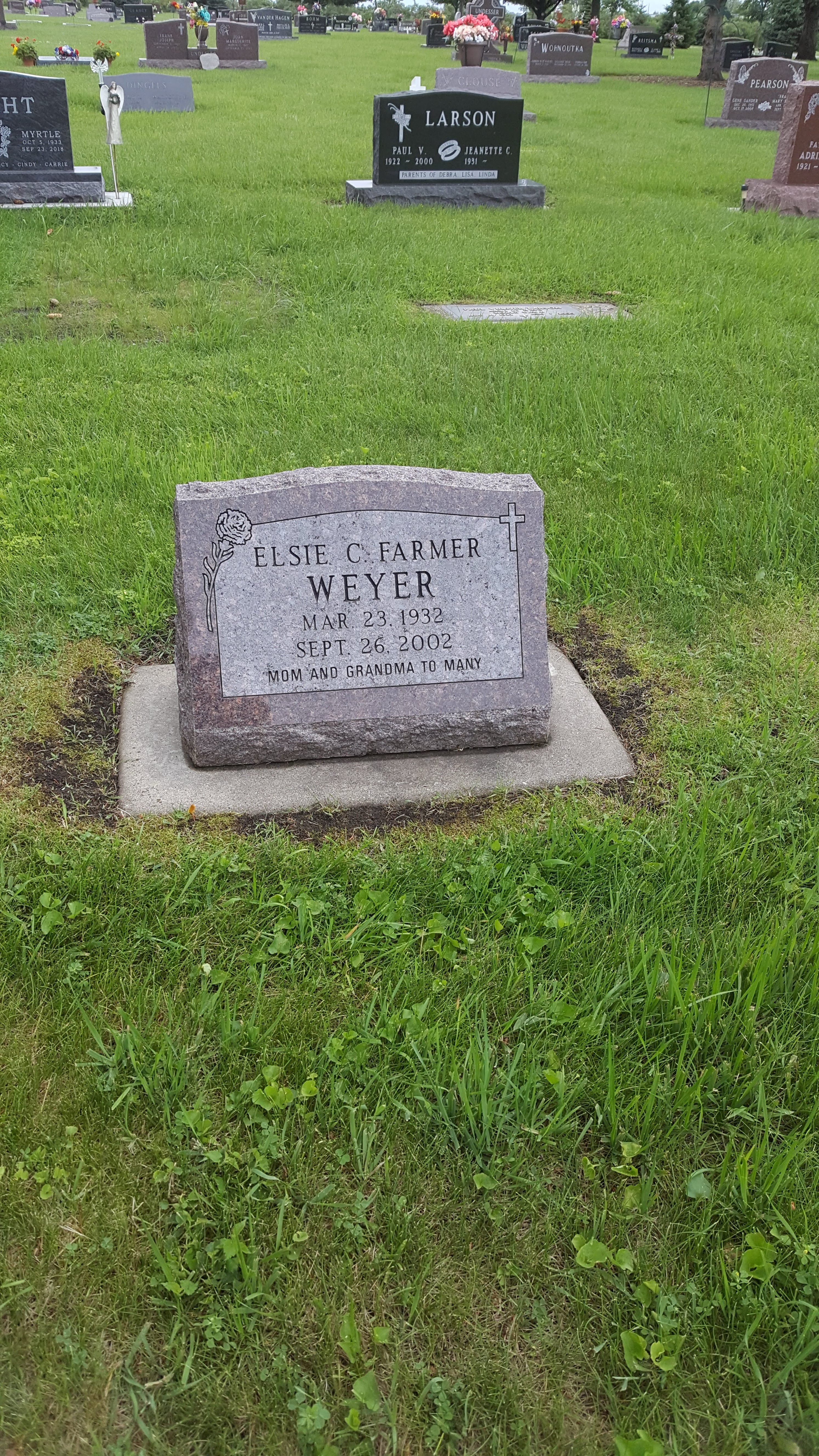 When my mom died, her headstone was carved to give her maiden and married names (she never remarried), and it reads “mom and grandma to many.” One of my dad’s brothers offered to let us have his plot for mom, which would place her near to my brother. But the cemetery (or the Divine) messed that up, and she is many rows away, although in the same section of the cemetery. Interestingly, she is next to a woman who was one of her high school friends, and across the road within the cemetery from where mom’s side of the family is buried – grandparents, aunts and uncles, etc.