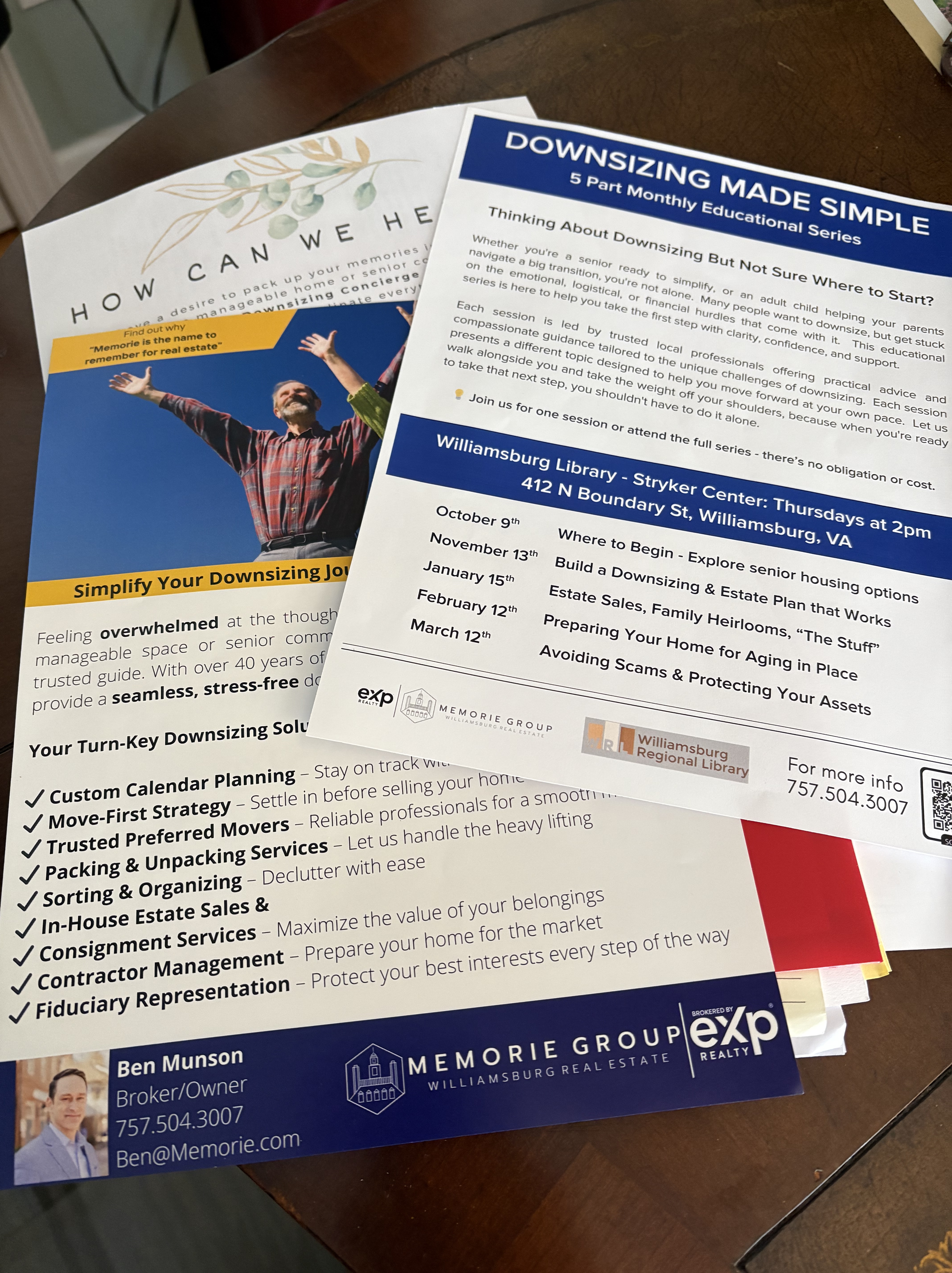 I invite you along on my journey. I’ll share about the sherpa program, the Downsizing Event program I’ve been attending, my thoughts, the detours, the process. If you get anxious to know more and more quickly than I push out my posts, it’s Ben Munson at the Memorie Group here that I’m working with.
